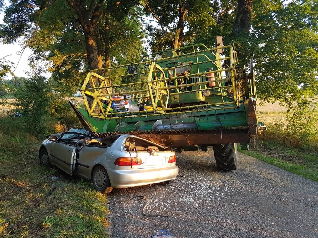Kwadrans po godzinie dziewiętnastej 8 sierpnia doszło do zderzenia samochodu osobowego z kombajnem.