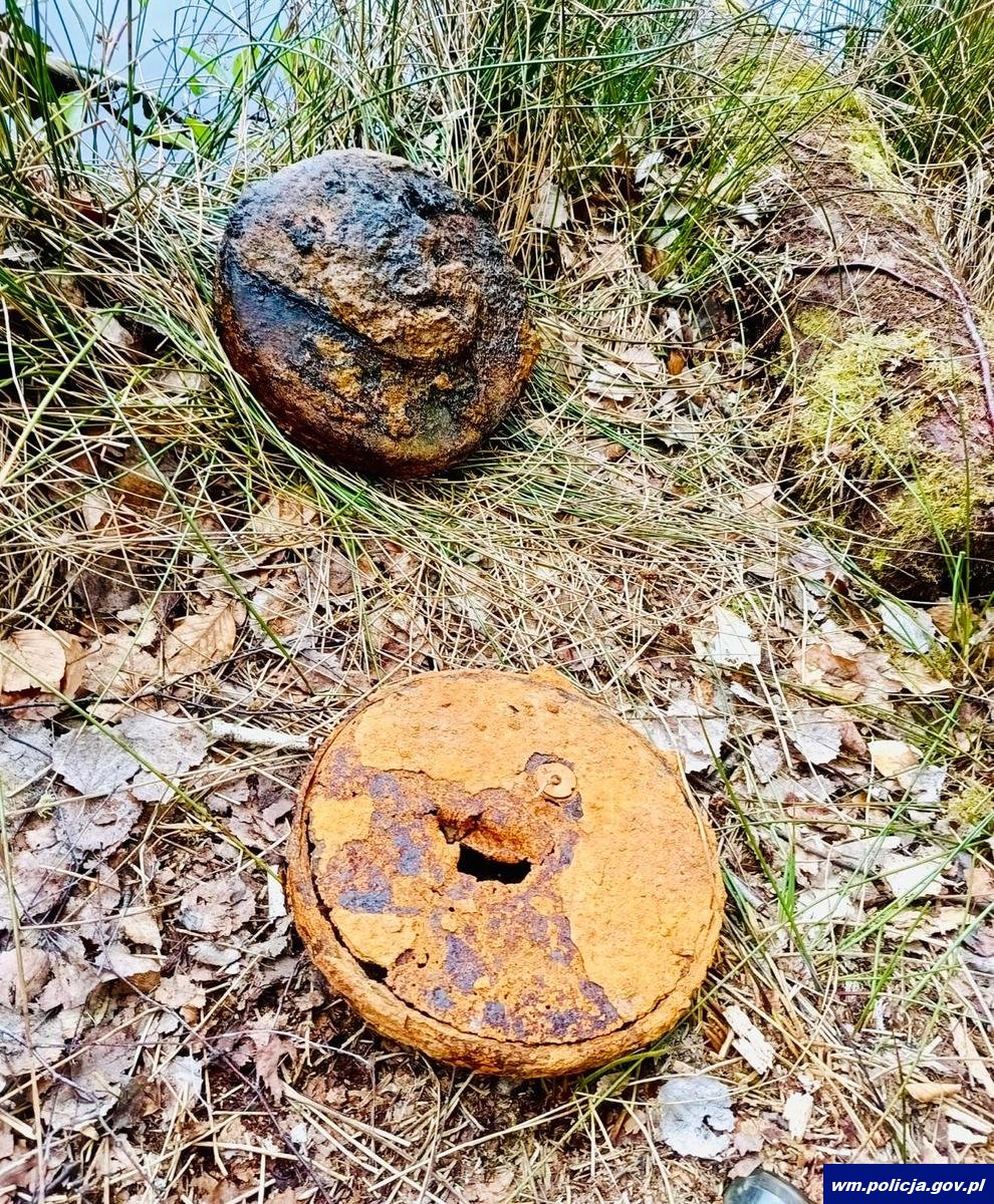 Policjanci pracowali na miejscu ujawnienia dwóch min przeciwpancernych pochodzących z okresu II Wojny Światowej. Niebezpieczne znaleziska zostały ujawnione w pobliżu Jeziora Ruskiego na terenie Gminy Morąg. Apelujemy o niezwłoczne powiadamianie służb w przypadku odnalezienia podobnych militariów.