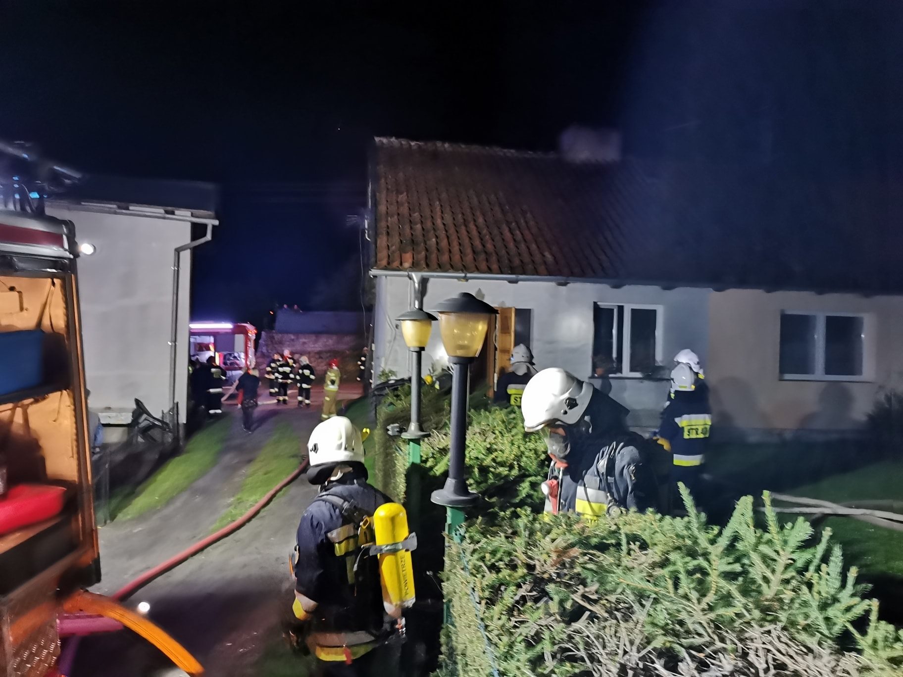 Ogień wybuchł w pomieszczeniu na parterze. Wewnątrz budynku panowało duże zadymienie. Natychmiast rozwinięta została linia gaśnicza. Jedna rota strażaków wyposażona w aparaty ochrony dróg oddechowych weszła do budynku i rozpoczęła działania gaśnicze. Równolegle dowódca zastępu zebrał najważniejsze informacje na temat możliwych osób poszkodowanych oraz mediów przyłączonych do budynku. Na szczęście mieszkańcy zdążyli opuścić budynek przed naszym przybyciem.