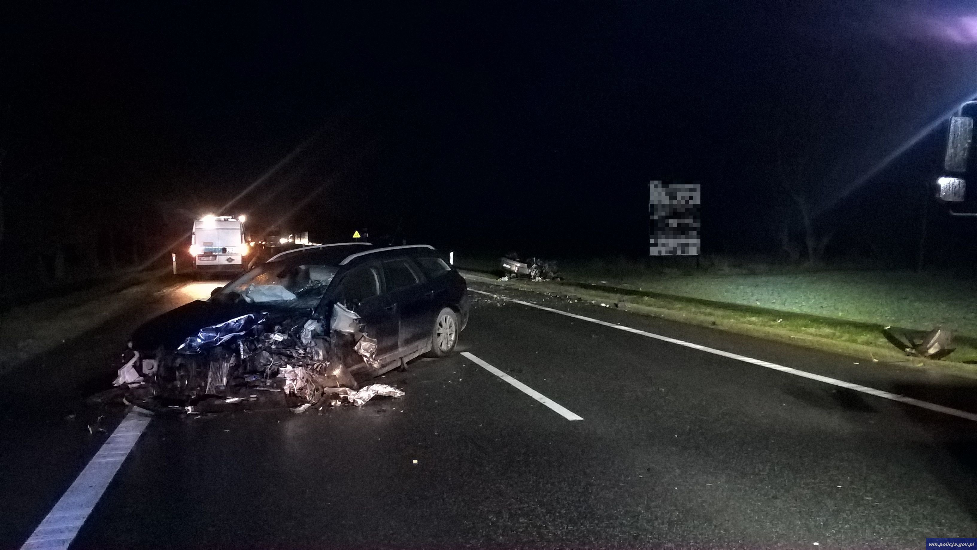 51-latek kierujący Audi A4 zginął na miejscu po zderzeniu czołowym z osobowym citroenem. Do szpitala trafił kierujący citroenem 62-latek oraz 52-letnia pasażerka z audi. Na miejscu, podczas oględzin ruchem kierowali policjanci, którzy zorganizowali objazd przez Marzęcino. W miejscu wypadku droga nr 7 w okolicach podelbląskiego Kazimierzowa była zablokowana wobie strony.