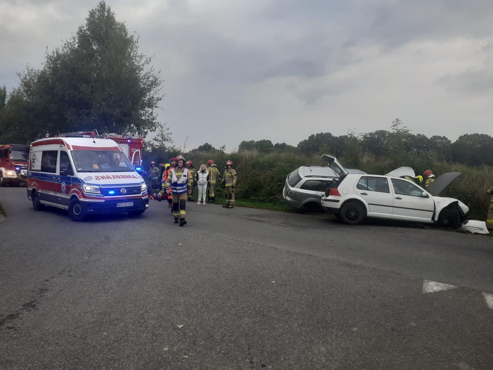 54-letnia kierująca volgswagenem golfem włączając się do ruchu z drogi podporządkowanej od strony Kraplewa nie ustąpiła pierwszeństwa jadącemu zgodnie z przepisami pojazdowi osobowemu marki mazda, której kierujący nie miał już czasu na reakcję i doszło do mocnego zderzenia.