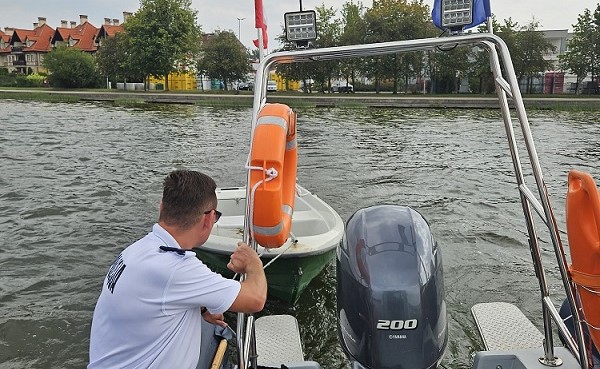 W niedzielę (25.08.2024r.) patrol wodny pełniący służbę na jeziorze Drwęckim w okolicach Ostródy od bosmana przystani Sokół otrzymał informację o tym, że mężczyzna, który wypożyczył łódź wiosłową poinformował go o tym, że z uwagi na zmianę warunków atmosferycznych oraz wysoką falę na akwenie, nie jest on w stanie wrócić bez pomocy do miejsca z którego wypłynął.
