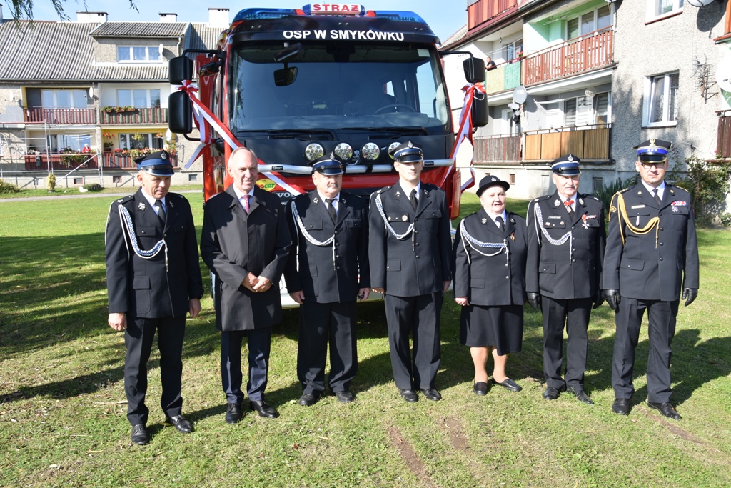 Jak strażacy przyznali, nowy pojazd pożarniczy to spełnienie ich marzeń. Kluczyki i dokumenty w symboliczny sposób przekazali Poseł na Sejm RP Zbigniew Babalski, dh Gustaw Marek Brzezin Prezes Zarządu Oddziału Wojewódzkiego ZOSP RP, a zarazem Marszałek Województwa, Zastępca Warmińsko-Mazurskiego Komendanta Wojewódzkiego PSP st. bryg. Tomasz Ostrowski oraz Wójt Gminy Ostróda Bogusław Fijas. Podczas uroczystości wręczone były odznaczenia oraz wyróżnienia. Prezes OSP Smykówko dh Irena Jara przekazała podziękowania wszystkim darczyńcom i osobom, które pomogły w organizacji uroczystości.