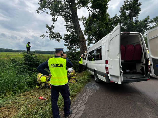 Ze wstępnych ustaleń wynika, że kierujący busem mężczyzna na prostym odcinku drogi z niewyjaśnionych przyczyn stracił panowanie nad pojazdem i zjechał na przeciwległy pas ruchu uderzając w drzewo. Kierujący z obrażeniami ciała został przetransportowany do szpitala.