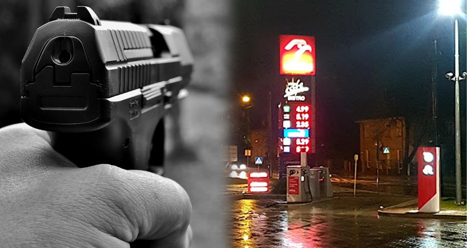 Mężczyzna trzymając w ręku broń wszedł do stacji paliw głównym wejściem i zachowywał się nieracjonalnie krzycząc w stronę personelu. Według wstępnych ustaleń miał następnie oddać strzał w stronę lady. W międzyczasie pod stację przyjechał radiowóz celem zatankowania. Kiedy mężczyzna zobaczył policjantów, porzucił broń i chciał pognać w stronę pobliskich bloków.