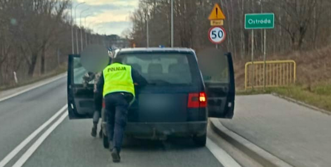 W niedzielę, policjanci ruchu drogowego patrolując ulice Ostródy, zauważyli pojazd zatrzymany na poboczu drogi. Po chwili z samochodu wysiadł mężczyzna i zaczął go pchać.