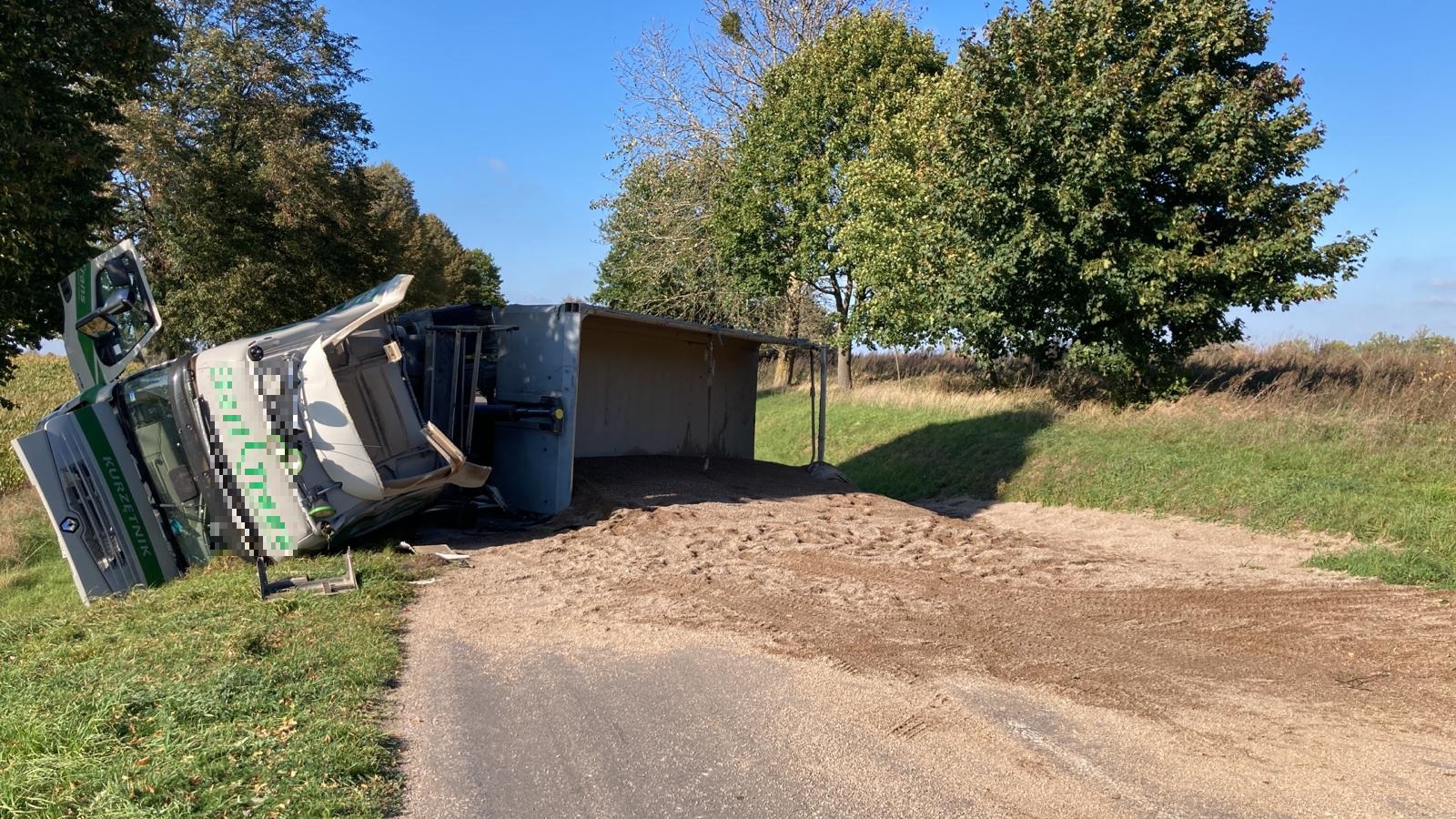 W dniu 10 października w miejscowości Zawroty na drodze wojewódzkiej nr 527 doszło do wypadku z udziałem ciężarówki przewożącej kruszywo. Strażacy z JRG Morąg, OSP Bramka i OSP Żabi Róg po przyjeździe na miejsce zastali pojazd leżący na boku częściowo w obrębie jezdni. Kierowca został objęty opieką medyczną przez zespół ratownictwa medycznego obecny na miejscu zdarzenia. Strażacy zabezpieczyli pojazd, a przybyły na miejsce zarządca drogi zajął się usunięciem rozsypanego kruszywa. W zdarzeniu brał udział p.o. Zastępca Komendanta Powiatowego PSP w Ostródzie st. kpt. Łukasz Zaniewski.