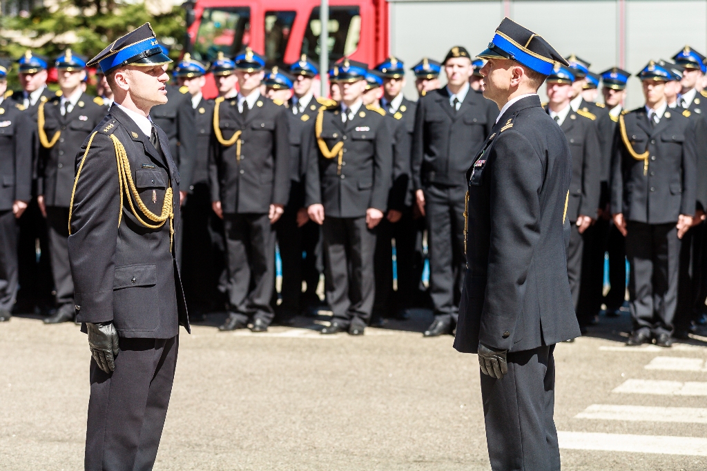Następnie przy akompaniamencie orkiestry, poczty sztandarowe oraz pododdział strażaków naszego powiatu przemaszerowały ulicami Ostródy na plac przed starostwo powiatowe w Ostródzie, gdzie odbył się uroczysty apel. W przemarszu uczestniczyli również zaproszeni goście, na czele z Marszałkiem województwa Warmińsko-Mazurskiego Gustawem Markiem Brzezinem, Starostą Ostródzkim Andrzejem Wiczkowskim, przedstawicielem Wojewody Warmińsko-Mazurskiego Stanisławem Orzechowskim, Burmistrzem Ostródy Czesławem Najmowiczem, Zastępcą Warmińsko-Mazurskiego Komendanta Wojewódzkiego Państwowej Straży Pożarnej bryg. Robertem Flicińskim, Komendantem Powiatowym PSP w Ostródzie bryg. Tomaszem Ostrowskim, Prezesem Zarządu Oddziału Powiatowego ZOSP RP dh Ryszardem Harasimem, samorządowcami powiatu ostródzkiego, przedstawicielami służb mundurowych oraz rodzinami strażaków. W przemarszu uczestniczyli także zaprzyjaźnieni niemieccy strażacy z Osterode am Harz. Dowódca uroczystości st. kpt. Marcin Wiśniewski złożył meldunek bryg. Flicińskiemu, który dokonał przeglądu pododdziału. Z okazji święta strażackiego podniesiona została flaga państwowa i odegrany hymn Polski. Dzień strażaka to czas uhonorowania ciężkiej pracy strażaków, poprzez wręczenie odznaczeń, awansów w stopniu i stanowisku oraz wyróżnień indywidualnych. Z okazji święta dnia strażaka wyróżnieni zostali: