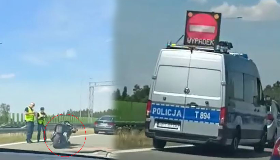 Prawdopodobnym scenariuszem zdarzenia jest konieczność gwałtownego hamowania przez kierującego motocyklem celem uniknięcia zderzenia z innym pojazdem.