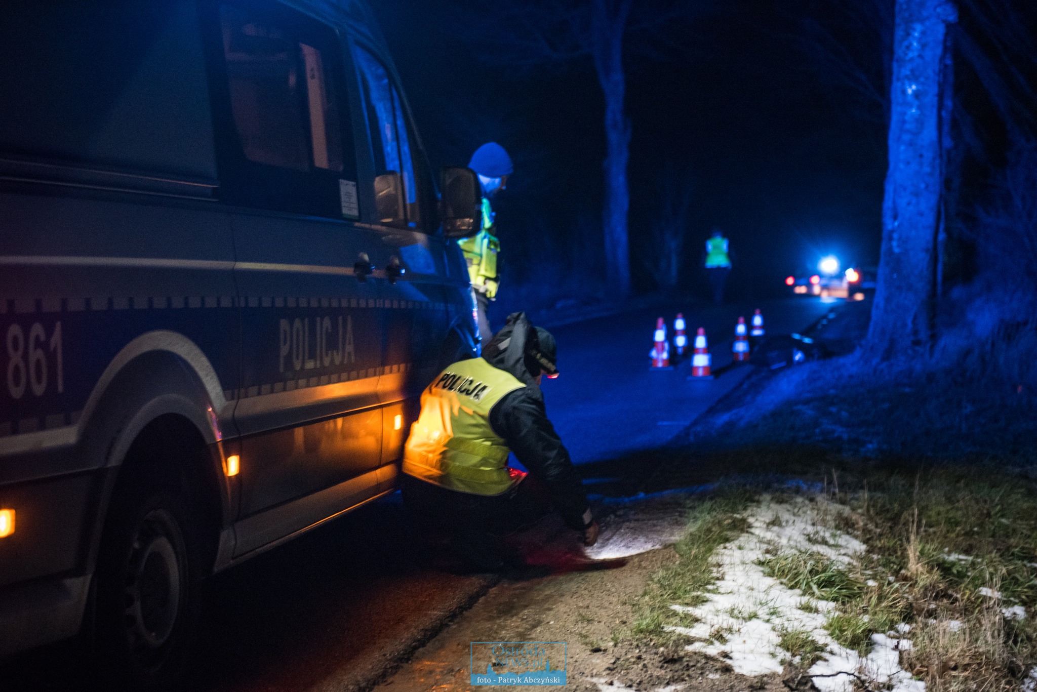Policjanci pod nadzorem prokuratora pracowali na miejscu tragedii, do której doszło w poniedziałek (6 stycznia) około godziny 22:00, na drodze z Miłomłyna do Bynowa.