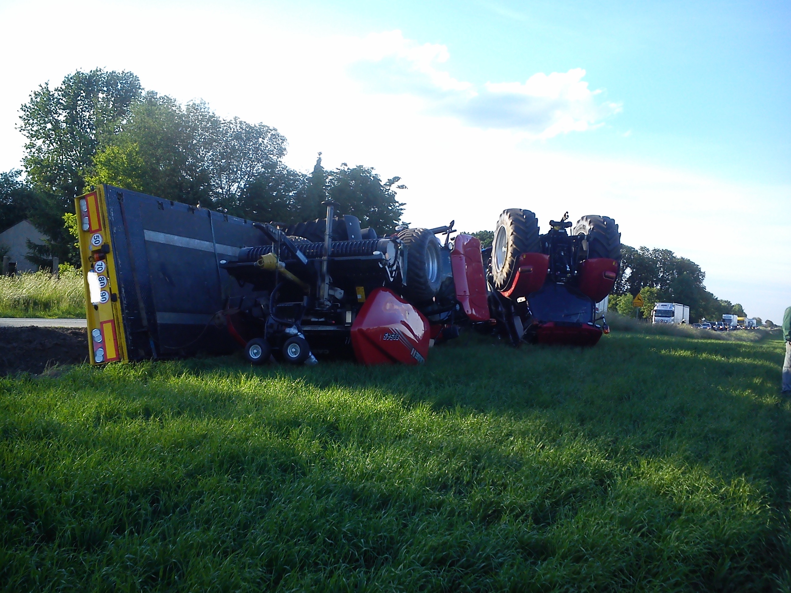 Informator podał, że skład ciężarowy, który przewoził maszyny rolnicze wpadł do rowu. Zdarzenie miało miejsce na drodze krajowej nr 15 w okolicy miejscowości Smykówko. Do akcji zadysponowane zostały trzy samochody ratowniczo-gaśnicze z ostródzkiej jednostki ratowniczo-gaśniczej oraz jeden samochód z Ochotniczej Straży Pożarnej w Smykówku. Na miejscu działań strażacy potwierdzili rodzaj wypadku. Zestawem ciężarowym jechał sam kierowca, który nie odniósł obrażeń. Nie wymagał pomocy medycznej. Strażacy zabezpieczyli miejsce zdarzenia i przepompowali olej napędowy ze zbiornika ciężarówki do pojemnika zastępczego. Następnie przy pomocy sorbentu usunięta została plama substancji ropopochodnej. W działaniach ratowniczych uczestniczyła również policja. Utrudnienia w ruchu drogowym trwały około dwóch godzin.