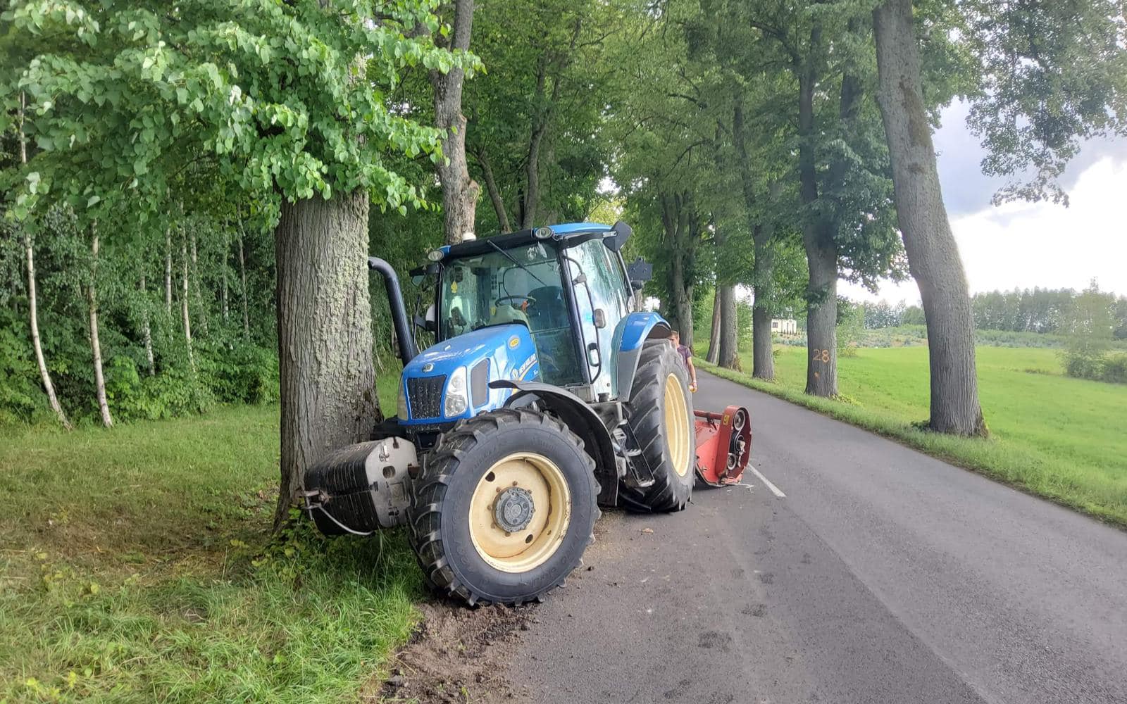 Na miejscu zastały rozbity ciągnik, który zjechał na pobocze, niszcząc przy tym znak drogowy. Koniec końców, pojazd zatrzymał się na przydrożnych drzewach.