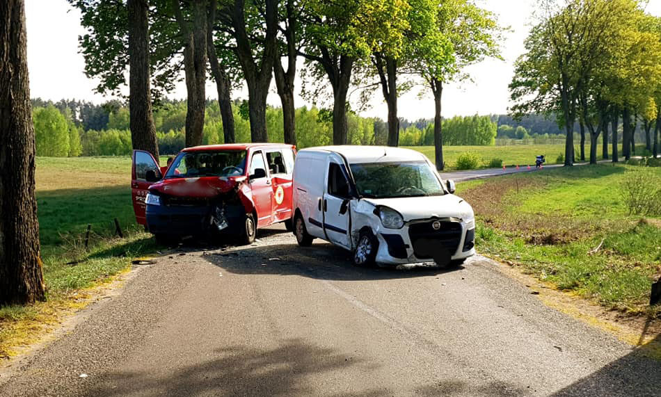 Na łuku drogi podjął manewr wyprzedzania 2 pojazdów. Po wyjściu z łuku, na wzniesieniu jadący z naprzeciwka kierowca fiata doblo po tym jak go zobaczył zaczął gwałtownie hamować, stracił panowanie nad autem i auto na jezdni stanęło bokiem, co doprowadziło zderzenia z busem. Busem podróżowały dzieci z domu dziecka (3 dzieci, opiekunka i kierowca) wszyscy z busa trafili do szpitala. Na miejscu był helikopter LPR. Kierowcy obu byli aut trzeźwi. Motocyklista oddalił sie z miejsca zdarzenia. Ze wstępnych ustaleń wynika ze obrażenia nie wskazują na zagrożenie życia. Droga była całkowicie zablokowana. Objazd odbywał się przez Molzę.