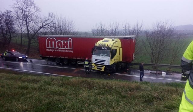 Ciężarówka najechała na samochód osobowy. Kierujący osobówką został zabrany do szpitala z podejrzeniem urazu żeber. Obaj kierowcy byli trzeźwi. Objazdy odbywały się: do Lubawy przez Iławę, do Ostródy przez nowa obwodnice.