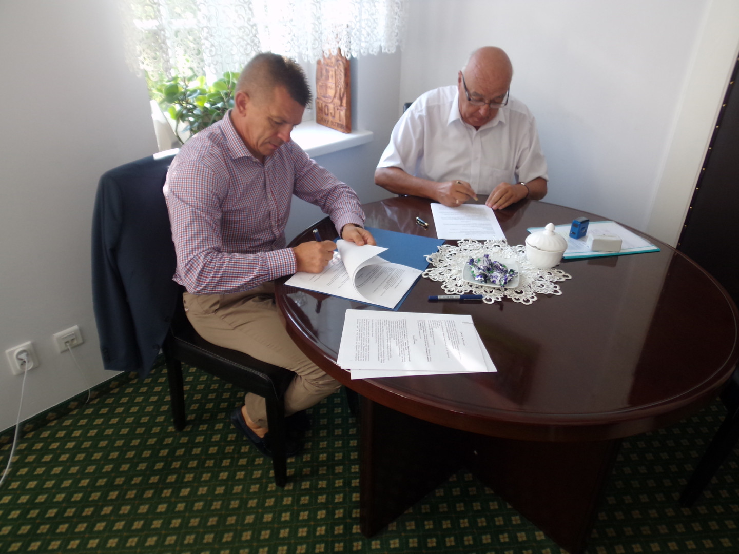 Wójt Gminy Ostróda Bogusław Fijas podpisał umowę na realizację zadania pn: „Budowa sieci kanalizacji sanitarnej wraz z biologiczną oczyszczalnią ścieków w m. Bednarki etap II”.