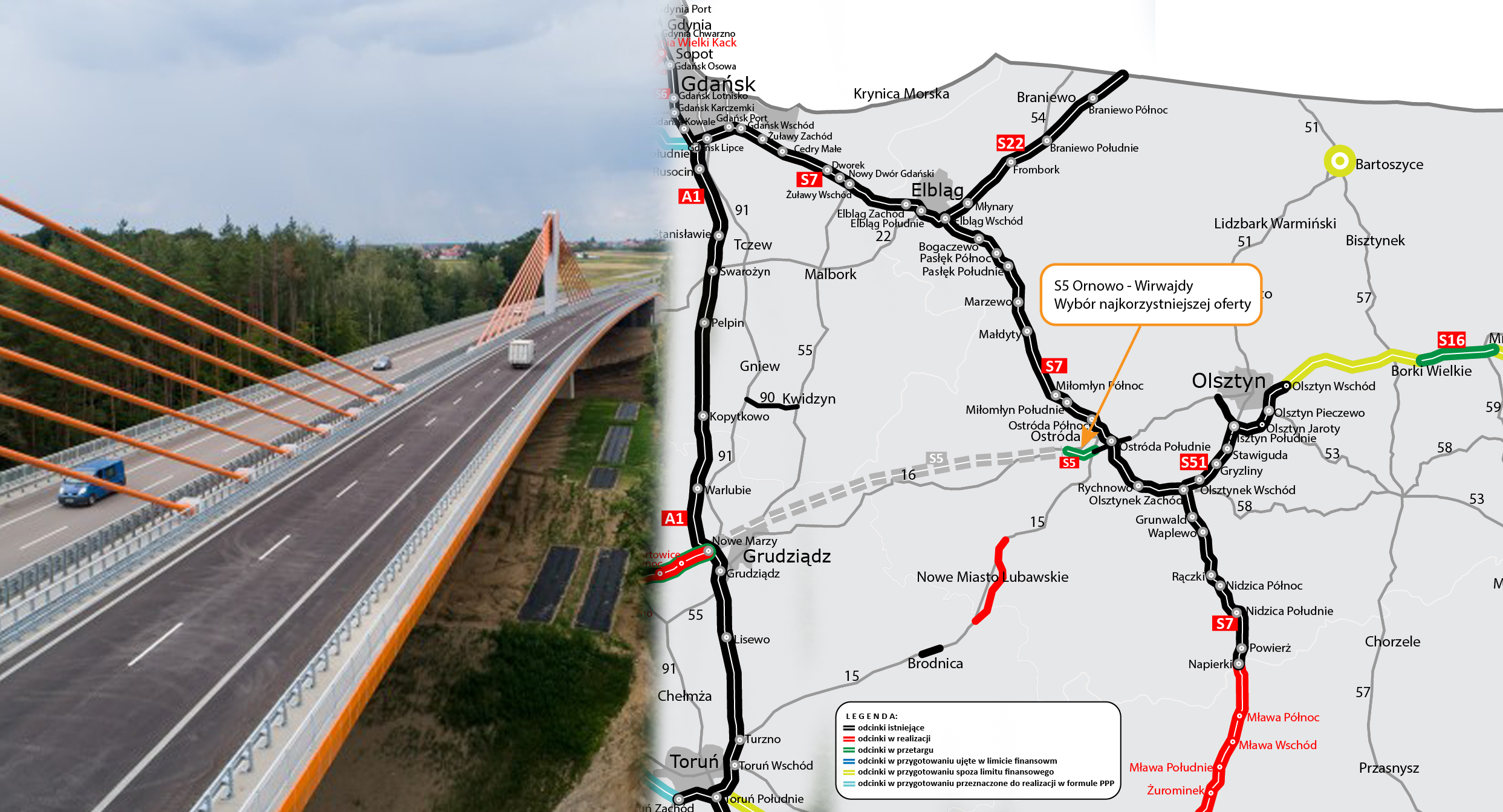 Wybrano wykonawcę w przetargu na projekt i budowę odcinka drogi ekspresowej S5 Ornowo – Wirwajdy. Kontrakt o wartości 204 mln zł zrealizuje w terminie 31 miesięcy z wyłączeniem okresów zimowych firma Budimex S.A.