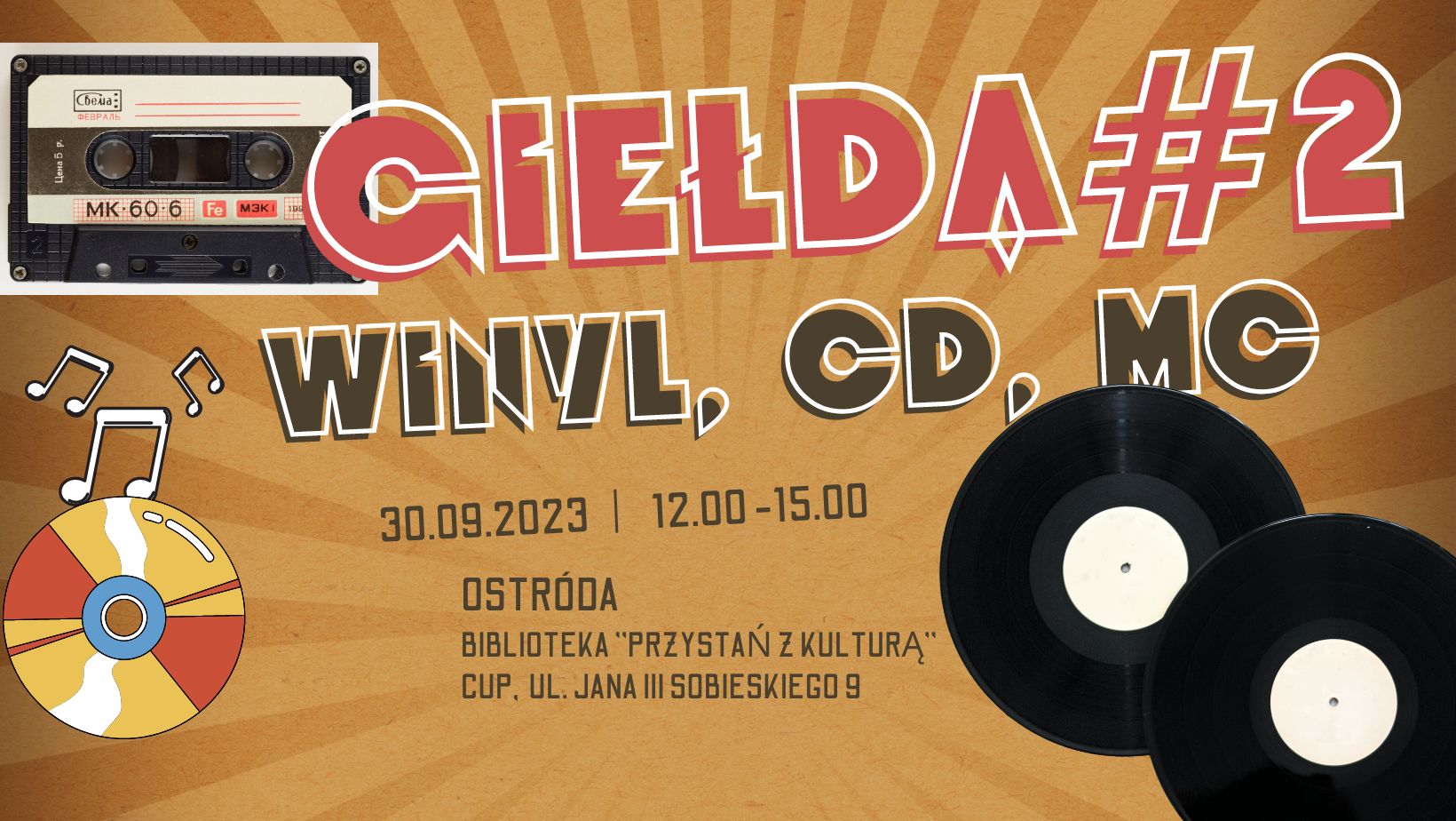 Po udanej pierwszej edycji, zapraszamy serdecznie na drugą w Ostródzie giełdę płyt winylowych, CD i kaset magnetofonowych.