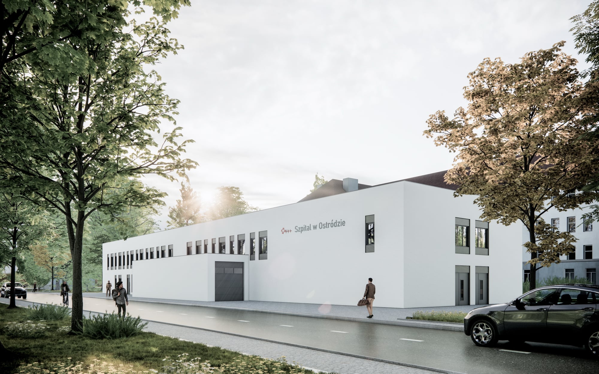 JEST WIZUALIZACJA NOWEGO SKRZYDŁA BUDYNKU SZPITALA W OSTRÓDZIE