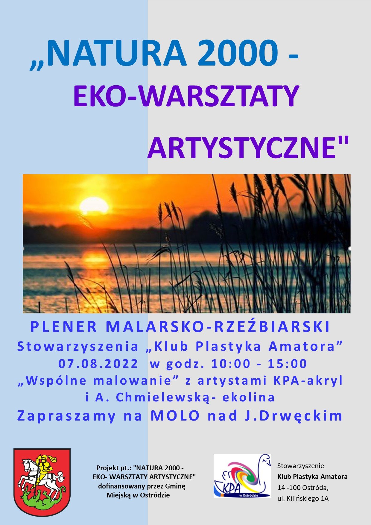 Kolejne wydarzenie artystyczne Klubu Plastyka Amatora, to realizacja projektu pt. „NATURA 2000 – EKO-WARSZTATY ARTYSTYCZNE ” w ramach „Wspierania działań na rzecz ekologii i ochrony środowiska” współfinasowane przez Gminę Miejską w Ostródzie.