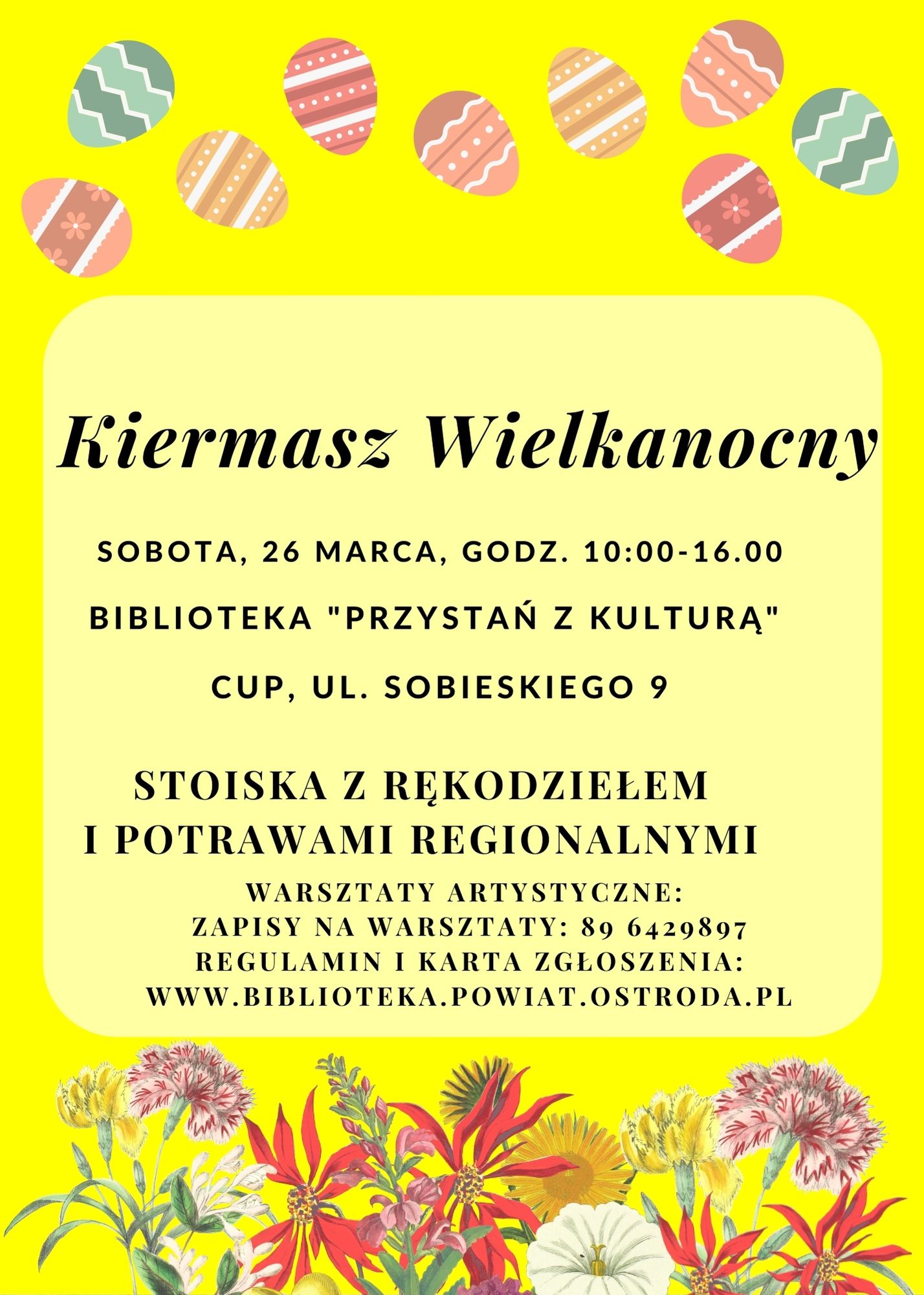 W sobotę 26 marca w godz. 10.00-16.00 zapraszamy na Kiermasz Wielkanocny, na którym będzie można zaopatrzyć się w produkty, zdrową żywność lub dekoracje na święta.