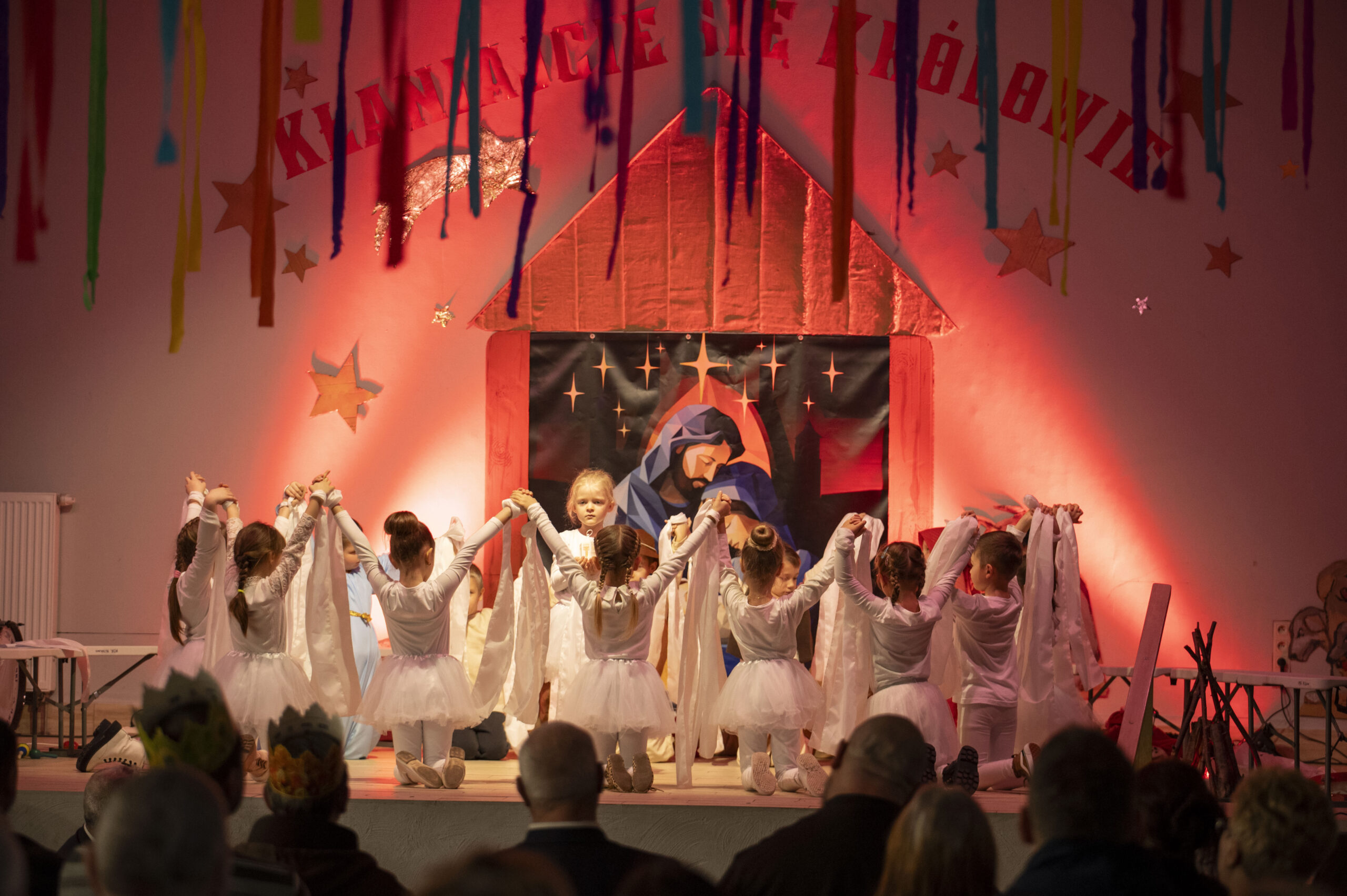 Na scenie wystąpiły dzieci z grupy „Motyle” z przedszkola, zespół „Wrmioanki” oraz grupa „Coolturalni” z Godkowa. Każdy występ został nagrodzony gromkimi brawami, a kolędowanie w wykonaniu uczestników wydarzenia wprowadziło wszystkich w świąteczny nastrój.