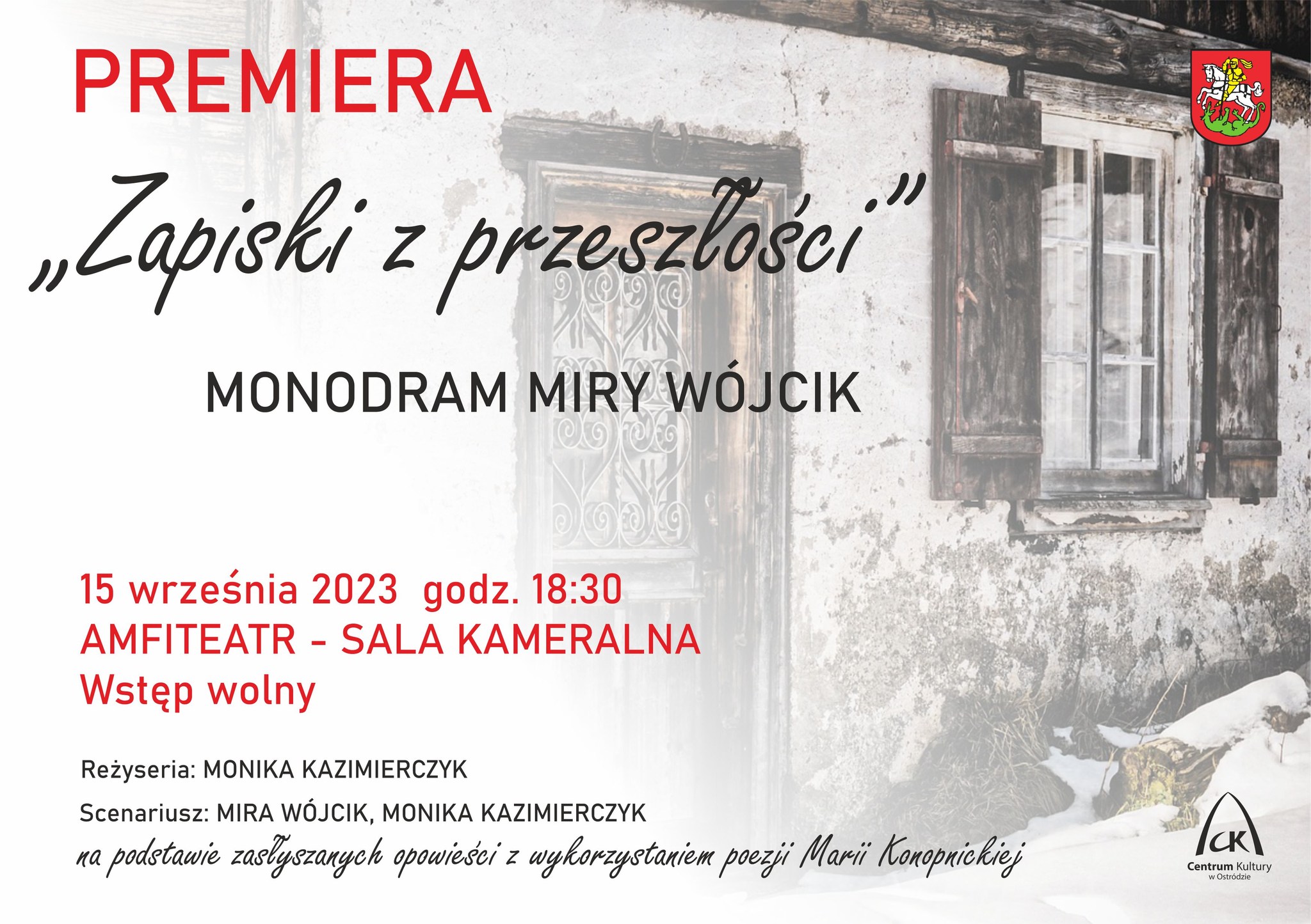 Monodram „Zapiski z przeszłości” to autorski projekt Miry Wójcik, w reżyserii Moniki Kazimierczyk, w którym wykorzystano poezję Marii Konopnickiej.