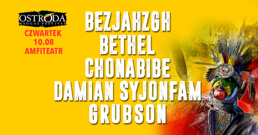 Ostróda Reggae Festival tradycyjnie już rozpoczyna się w tym roku koncertem w ostródzkim amfiteatrze, by następnie przenieść się na 3 kolejne dni na teren Czerwonych Koszar. Program 10.08 oprócz ogłoszonego wcześniej Grubsona zamykają polscy artyści Chonabibe, Damian SyjonFam, Bethel i Bezjahzgh.