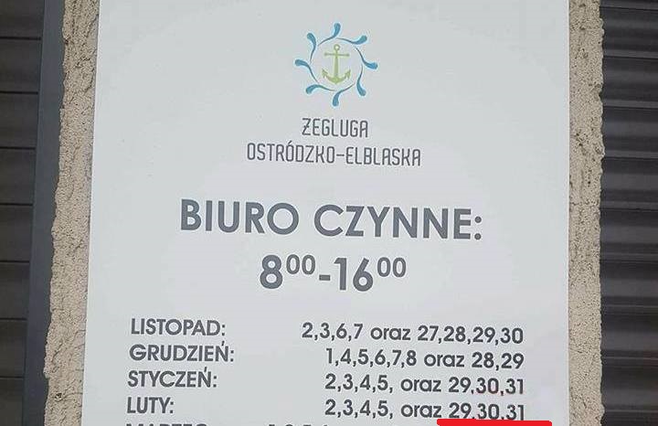 Ostródzkie instytucje chyba zapomniały o ilości dni w lutym 2018 roku, co można zauważyć na zdjęciach (foto przed i po „korekcie” dni).