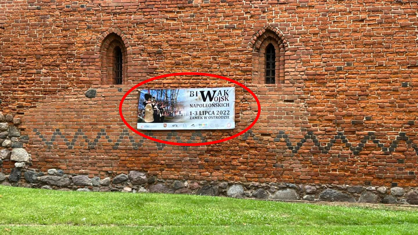 Tymczasem na jednym z najcenniejszych ostródzkich zabytków wiesza się bez ładu i składu baner reklamowy jednego z letnich wydarzeń. Rozumiemy, że uchwała obowiązuje tylko mieszkańców, a Miasta i podległych mu podmiotów już nie?