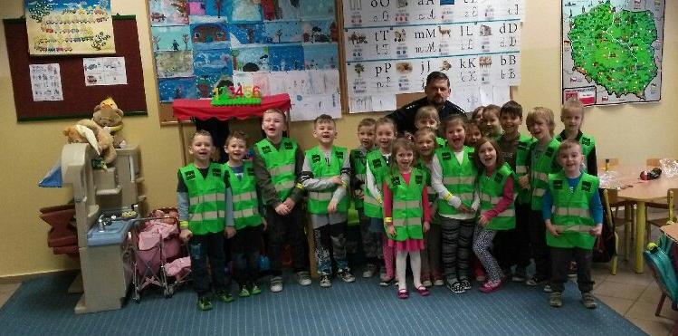 Spotkał się z przedszkolakami i uczniami klasy zero, by rozmawiać na temat bezpieczeństwa w ruchu drogowym. Funkcjonariusz omówił najczęstsze błędy popełniane przez kierujących i pieszych, które są przyczyną zdarzeń drogowych. Policjant zwrócił uwagę jak ważne jest używanie elementów odblaskowych podczas poruszania się po drogach po zmierzchu. Tłumaczył, że to nie tylko obowiązek, ale również potrzeba zagwarantowania sobie bezpieczeństwa poprzez bycie widzialnym dla kierujących pojazdami.