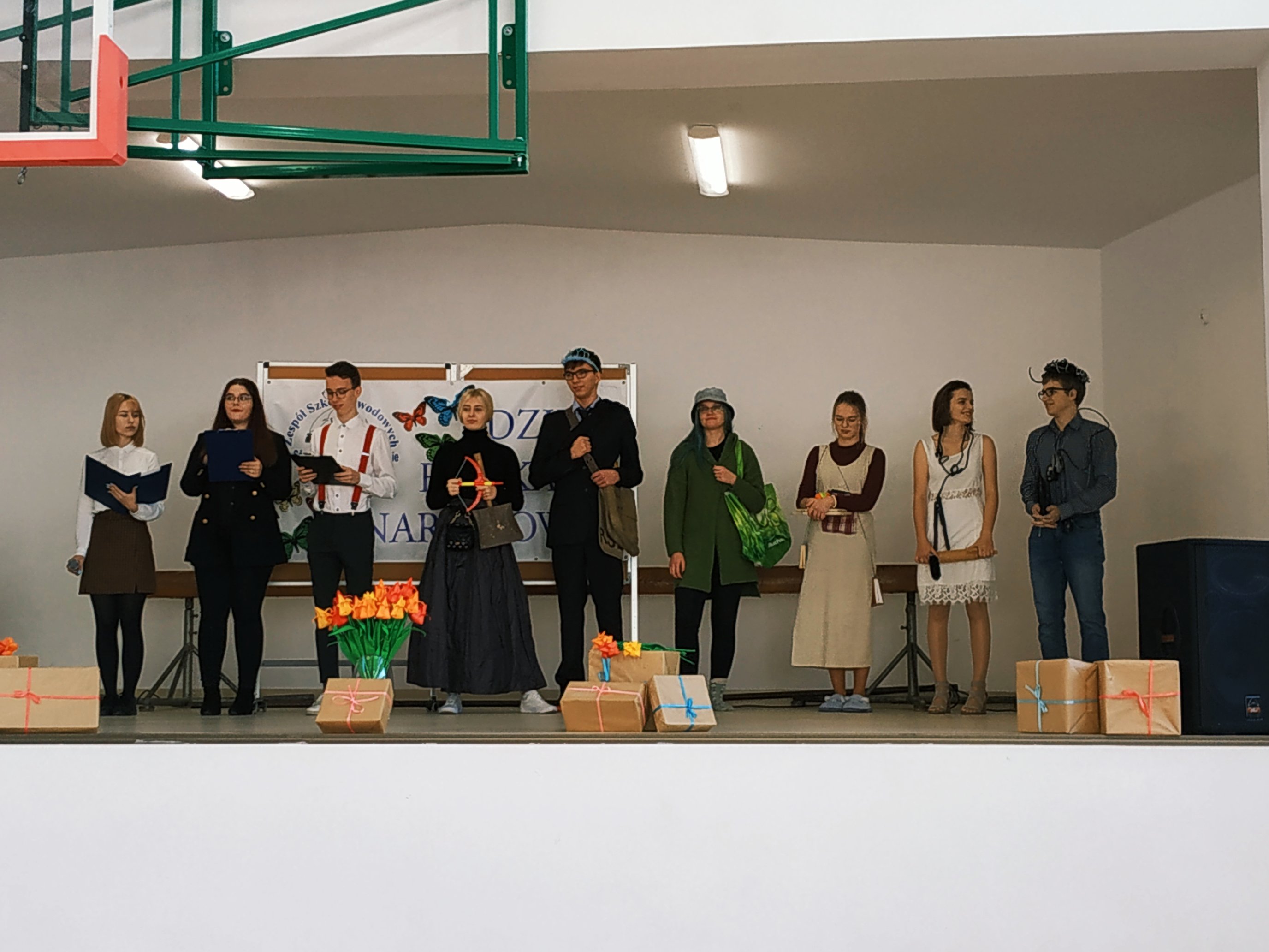 Na zakończenie uroczystości grupa uczniów wystąpiła w montażu słowno- muzycznym o humorystycznym zabarwieniu- pokaz mody nauczycielskiej.