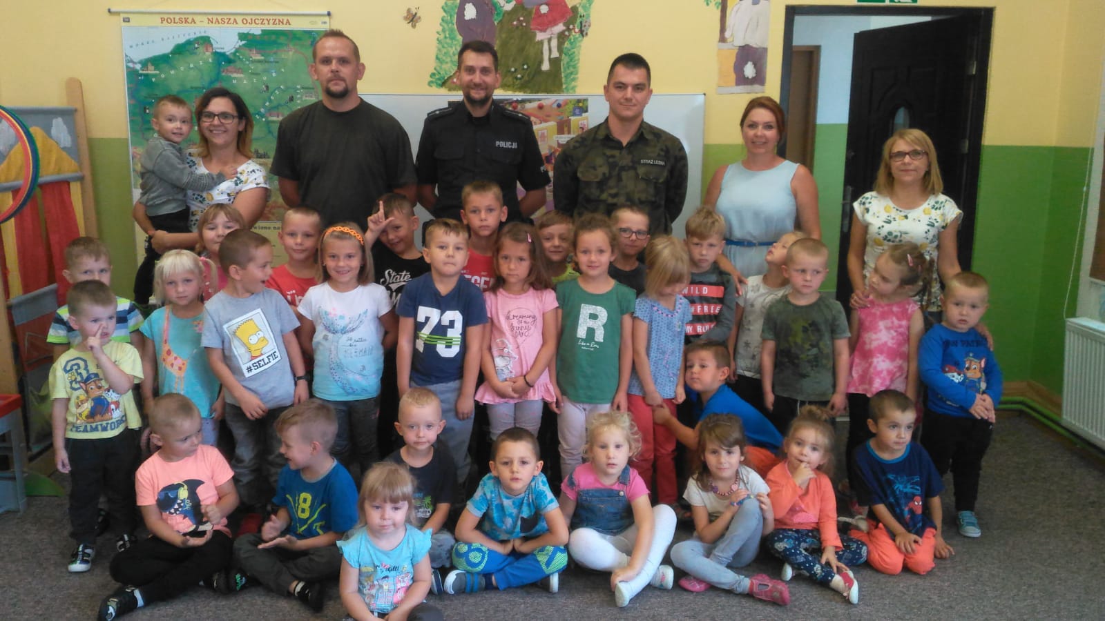 Dzielnicowy z Komendy Powiatowej Policji w Ostródzie mł. Asp. Karol Górnicki wraz ze strażnikami leśnymi odwiedzili przedszkolaków z Zespołu Przedszkolnego ze Szkoły Podstawowej Policji w Idzbarku.