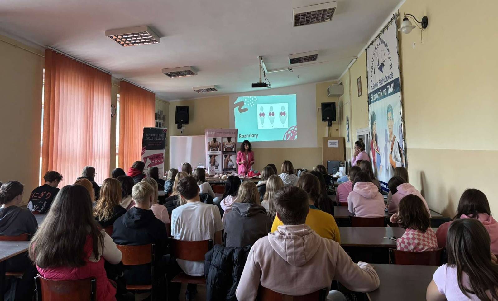 29 października 2024r. odbyły się warsztaty brafittingu, które poprowadziła pani Joanna Margalska. Podczas zajęć dziewczęta dowiedziały się jak prawidłowo dobrać biustonosz do swojej budowy, aby zmniejszyć ryzyko powstawania wad postawy, bóli kręgosłupa, a także rozwoju asymetrii i zniekształceń piersi. Na zakończenie spotkania każdy uczestnik został poczęstowany słodkościami przygotowanymi przez kolegów i koleżanki z klasy o profilu gastronomicznym pod nadzorem pani Barbary Łabackiej oraz Wiesławy Bartnickiej.