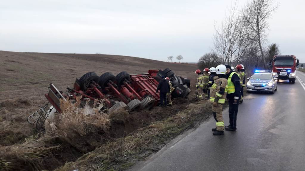 Do zdarzenia drogowego doszło kilkanaście minut po godzinie siódmej na drodze technicznej w pobliżu zakładów mięsnych w Tyrowie. Ciągnik siodłowy z naczepą – cysterną wypadł z drogi i przewrócił się do rowu. Zestawem przewożono 22 tony płynu do oczyszczania spalin w silnikach. W akcji ratowniczej udział brały samochody ratowniczo-gaśnicze z JRG Ostróda i OSP Samborowo. Ciężarówką podróżował sam kierowca, który nie odniósł obrażeń. Strażacy zabezpieczyli miejsce zdarzenia i wyciek oleju napędowego ze zbiornika ciągnika siodłowego. Cysterna nie rozszczelniła się, jednak aby usunąć zestaw ciężarowy z rowu konieczne będzie przepompowanie ładunku do cysterny zastępczej. Utrudnienia w ruchu w tym miejscy mogą potrwać kilka godzin.