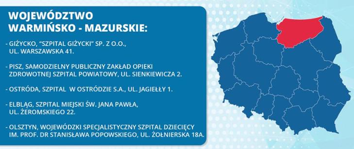W dniu 9 marca ogłoszony został wykaz szpitali, do których mają być transportowani pacjenci zakażeni koronawirusem. Szpital w Ostródzie jest główną placówką, który ma sprawować tą funkcję, jednak powołano dwie dodatkowe placówki. Są nimi Wojewódzki Specjalistyczny Szpital Dziecięcy w Olsztynie oraz Szpital Miejski św. Jana Pawła II w Elblągu. Dodatkowo w naszym województwie wyznaczono także szpital w Piszu i Giżycku.