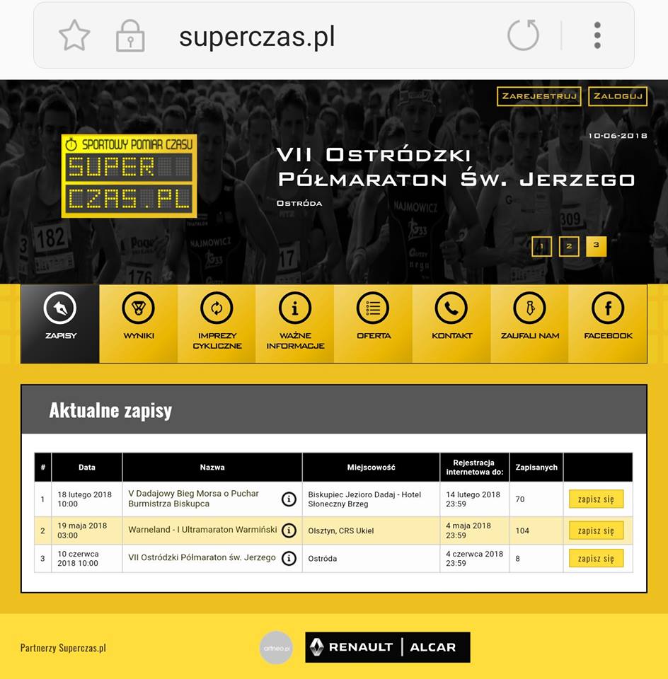 Zachęcamy Was do zapoznania się z regulaminem zamieszczonym w www.superczas.pl i wzięcie udziału w imprezie. Początek roku to dobry czas na wyznaczenie sobie celów i zrobienie postanowień. Bardzo będzie nam miło jeśli znowu się spotkamy w Ostródzie. Będziemy także na bieżąco informować jeśli coś nam dojdzie do puli nagród. Uprościliśmy i zmniejszyliśmy ilość kategorii ale zostawiliśmy te najbardziej przez Was lubiane. Serdecznie zapraszamy.