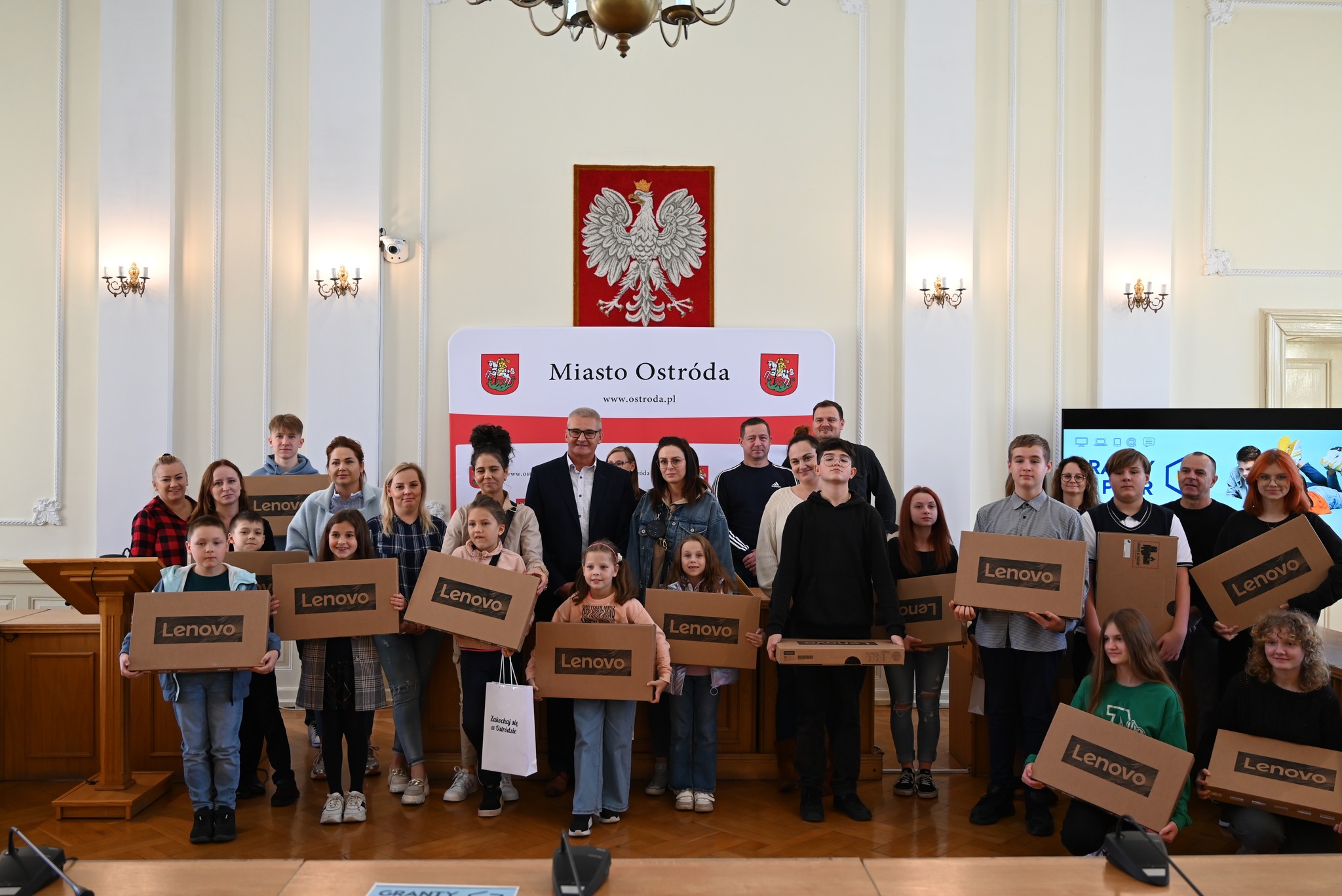 W sali sesyjnej ostródzkiego ratusza część komputerów bezpośrednio na ręce zainteresowanych przekazał Burmistrz Ostródy Zbigniew Michalak.