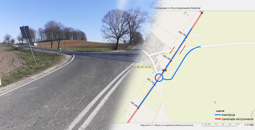 Wykonawca w ciągu 12 miesięcy ma zaprojektować przebudowę drogi krajowej nr 15 w miejscowości Rożental. Projekt będzie obejmował podniesienie nośności nawierzchni do 11,5 t/oś, przebudowę skrzyżowania na rondo w km 346+300, likwidację skrzyżowania z drogą powiatową nr 1214N, budowę korpusu drogowego o przekroju jednojezdniowym 1×2, odtworzenie istniejących zatok autobusowych w innej lokalizacji wraz z peronami i dojściami oraz budowę chodników, przejść dla pieszych, oświetlenia drogowego przeznaczonego dla przejść dla pieszych. Prace budowlane przewidziane są na lata 2022 – 23.