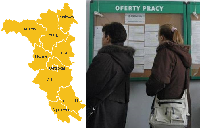 Ilość zarejestrowanych w Urzędzie pracy bezrobotnych w dużym stopniu zmniejszyła masowa rekrutacja pracowników do budowy dróg oraz rozwój lokalnych firm. Spółka Ostróda Yacht w chwili obecnej zatrudnia około 700 osób i na tym nie poprzestaje. Dodatkowy personel będą zatrudniać m.in Model Art czy firma Łukosz w Lubajnach.