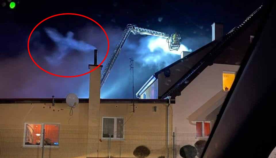 Dla jednych jest to zbieg okoliczności przy formowaniu się dymu, a dla innych znak że dobre byty z niebios nad nami czuwają. Niemniej zawsze dobrze jest zobaczyć taki widok i się nim napawać. Warto też dodać, że interwencja strażaków była udana i nie doszło do pożaru domu. Dobra energia była razem z nimi i domownikami.