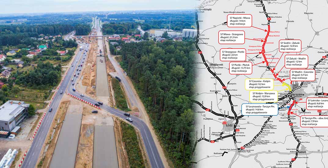 Z blisko 250-kilometrowego odcinka przyszłej drogi ekspresowej kierowcy mają już do dyspozycji 90 km, w realizacji jest ok. 136 km, a w przygotowaniu jest dokumentacja na kolejne ok. 22 km. W 2020 r. podpisaliśmy umowy na zaprojektowanie i budowę prawie 35 km drogi S7 pomiędzy Płońskiem a Czosnowem.