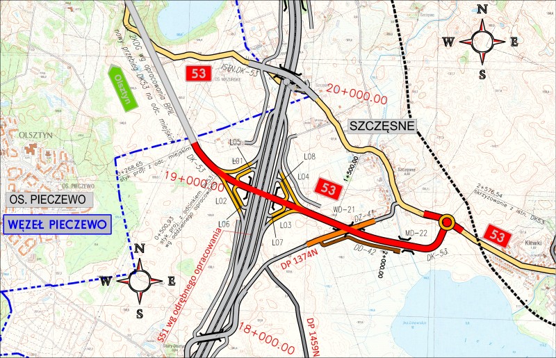 - odcinka DK53 o długości około 2,3 km od miejsca styku zadań GDDKiA i Miasta Olsztyna do istniejącej DK53,