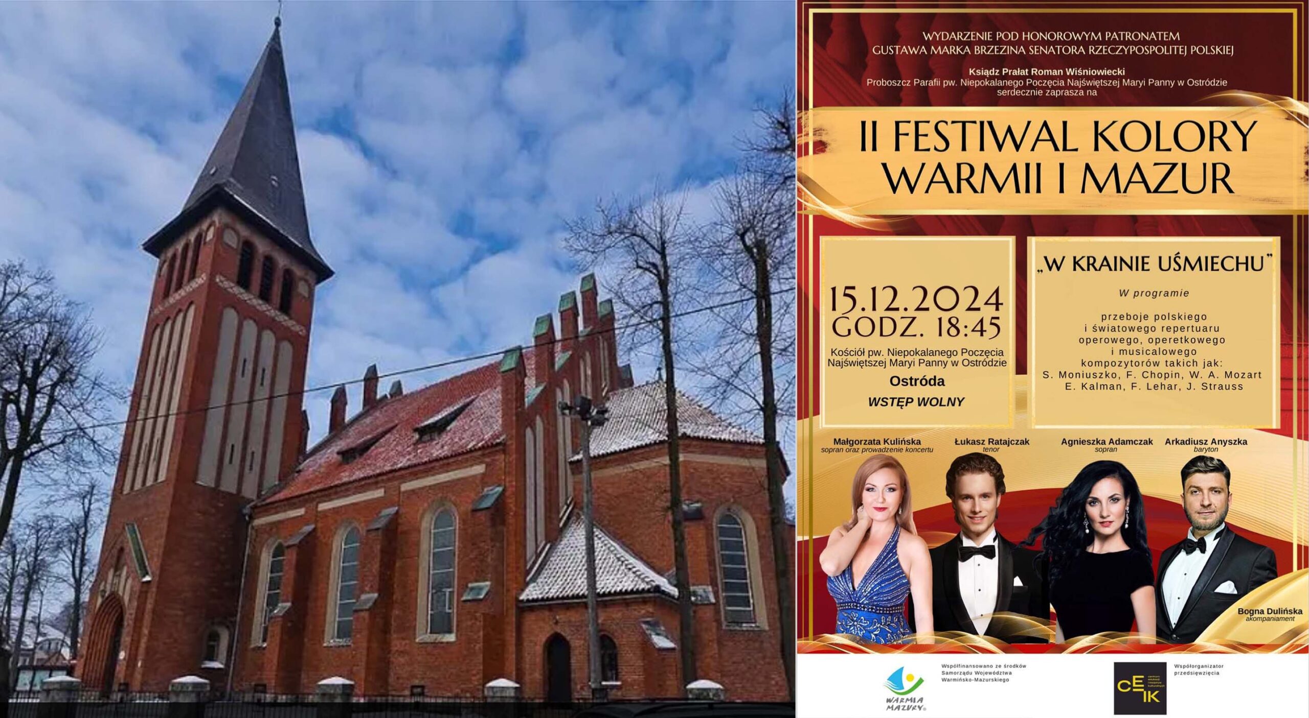 To wszystko w ramach drugiej edycji Festiwalu Kolory Warmii i Mazur, którego koncert nosi tytuł „W Krainie Uśmiechu”. W programie znajdą się przeboje polskiego i światowego repertuaru operowego, operetkowego oraz musicalowego. Utwory takich kompozytorów, jak S. Moniuszko, F. Chopin, W.A. Mozart, E. Kalman, F. Lehár i J. Strauss, zabrzmią w wykonaniu znakomitych artystów: Małgorzaty Kulińskiej (sopran, prowadzenie koncertu), Łukasza Ratajczaka (tenor), Agnieszki Adamczak (sopran) i Arkadiusza Anyszki (baryton). Akompaniować będzie Bogna Dulińska.