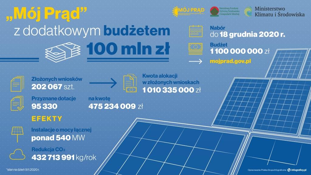 „Wychodząc naprzeciw oczekiwaniom naszych wnioskodawców i wywiązując się z obietnicy zakończenia naboru dopiero za nieco ponad miesiąc, zdecydowaliśmy wspólnie z Ministerstwem Klimatu i Środowiska o zwiększeniu puli dostępnych środków w „Moim Prądzie”. Dodatkowe 100 mln zł, to szansa dla kolejnych 20 tys. osób” – dodaje wiceprezes NFOŚiGW Paweł Mirowski.