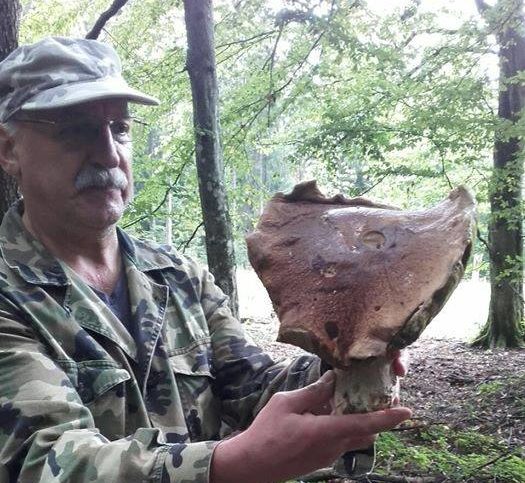 Popadało. A jak jest deszcz, to często są też grzyby. Takiego prawdziwka zebrał dziś grzybiarz pan Mietek w okolicy Faltyjanek. Średnica kapelusza to 25 cm, zaś waga… hmm, prawie półtora kilograma, dokładnie 1456 gram. Starczy na całkiem smaczną zupę grzybową dla całej rodziny.