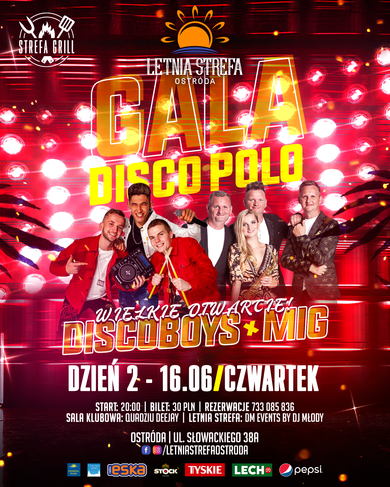 3.1 Nagrodą w konkursie jest 10 pojedynczych zaproszeń na koncert disco polo Discoboys + MIG, który odbędzie się w dniu 16.06.2022 w Letniej Strefie w Ostródzie.
